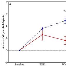 Primjer kako maksimalni primitak kisika rapidno pada uslijed prestanka treniranja dok odrasle populacije prikazan je na slici 1. Plava linija predstavlja grupu vježbača koja nakon 13 tjedana tjelovježbe nastavlja s treningom u trajanju od 4 tjedna, dok crvena linija predstavlja grupu vježbača koji nakon 13 tjedana tjelovježbe prestaju s treniranjem u trajanju od 4 tjedna. Pad primitka kisika u prva 3-4 tjedna prestanka treniranja je primarno posljedica smanjena koncentracije aerobnih enzima te smanjena udarnog volumena srca.